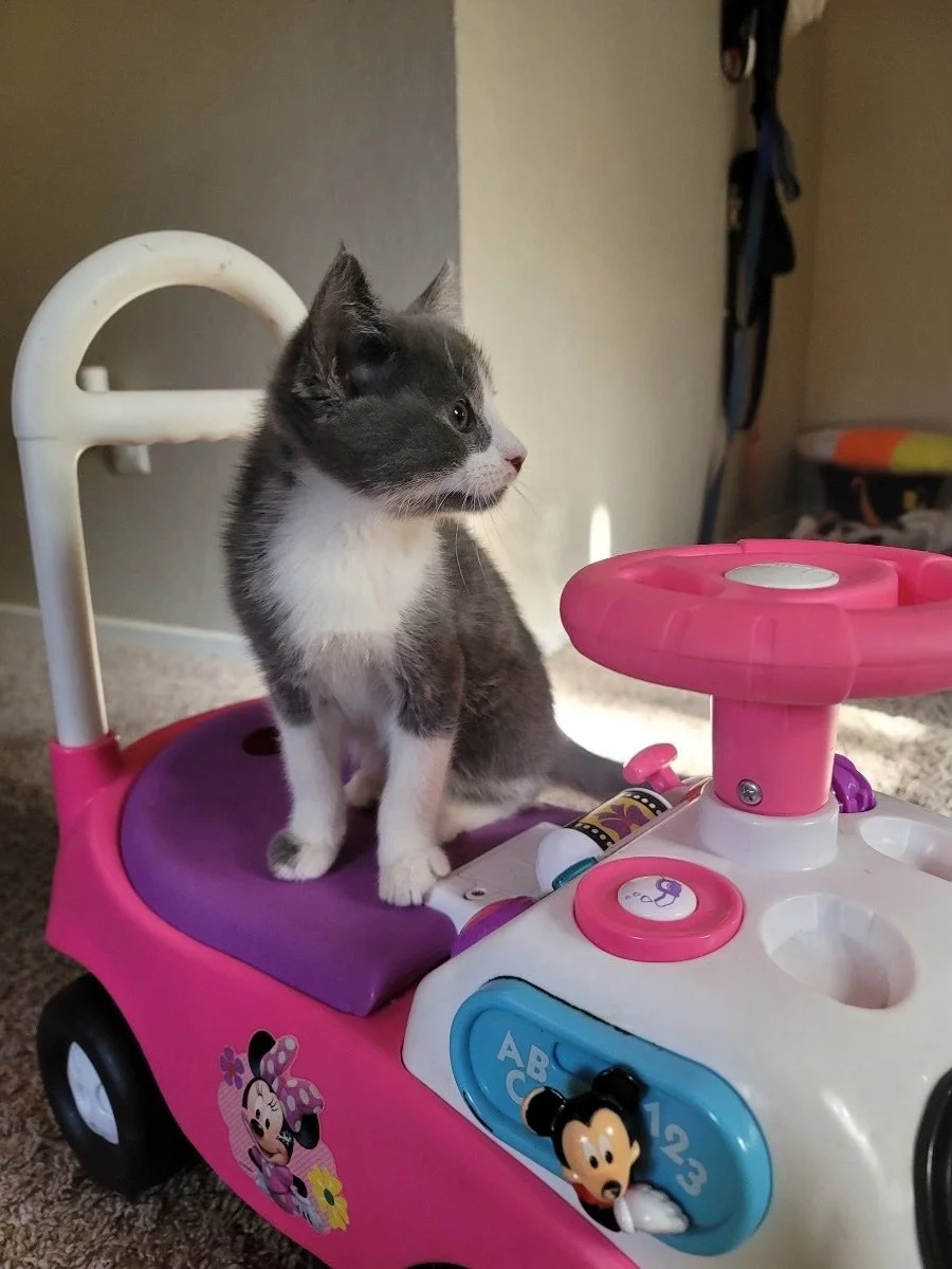 She is a beautiful, sweet, and playful kitten. Malificent will be a great addition to any family. Good with other cats and kids.