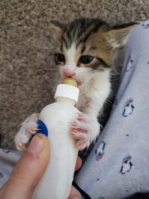 Blackie is a beautiful female kitten. MO4PAWS rescued her when she was 2 weeks old and found outside of a shed. Our amazing fosters bottle fed her and her litter mates. This ended up being a foster fail situation.
