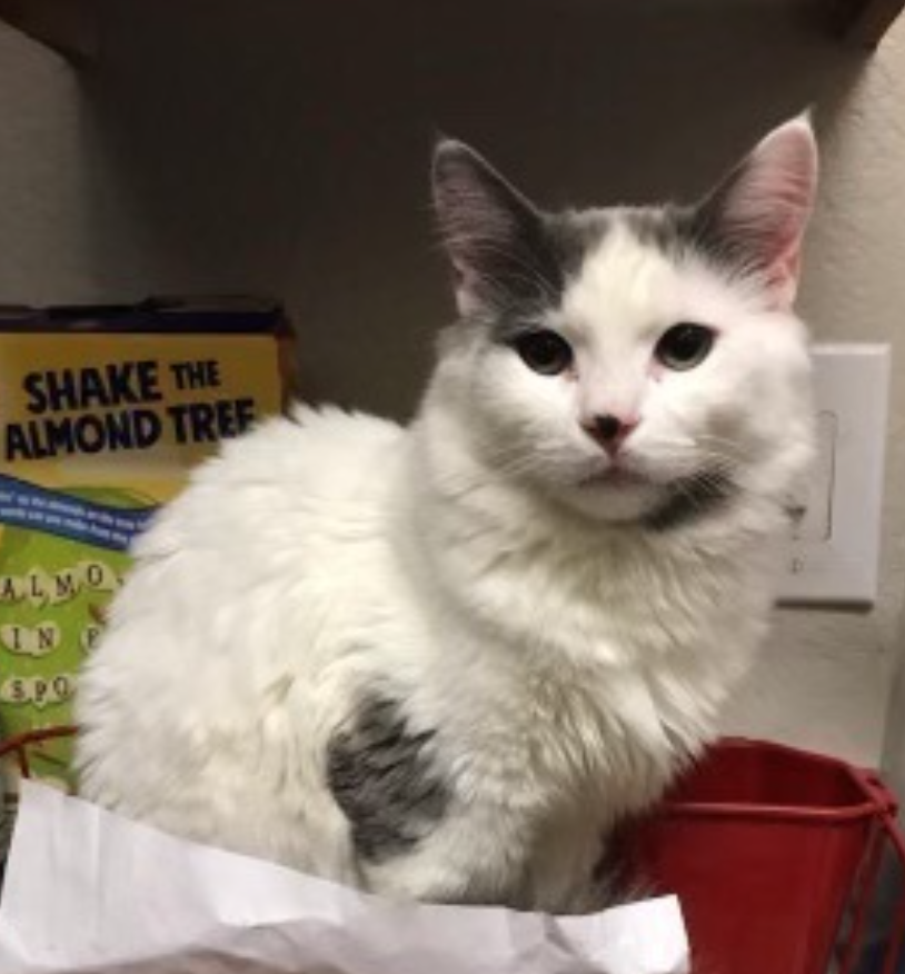 Meet Moo! She was found on a freeway in Modesto and was dehydrated. She has fully recovered and is a beautiful medium hair tuxedo kitten.