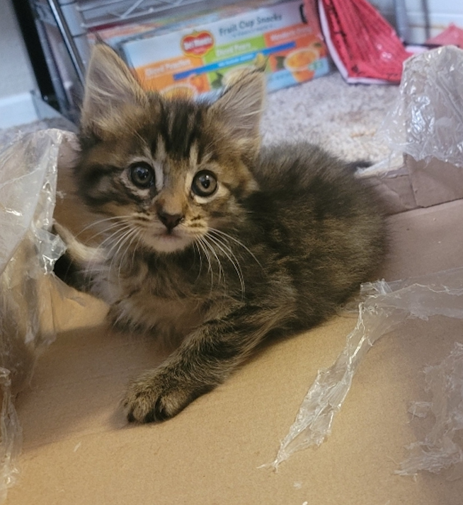 Jamie is a sweet and playful medium hair 6 week old kitten that MO4PAWS rescued from Los Banos Animal Shelter.